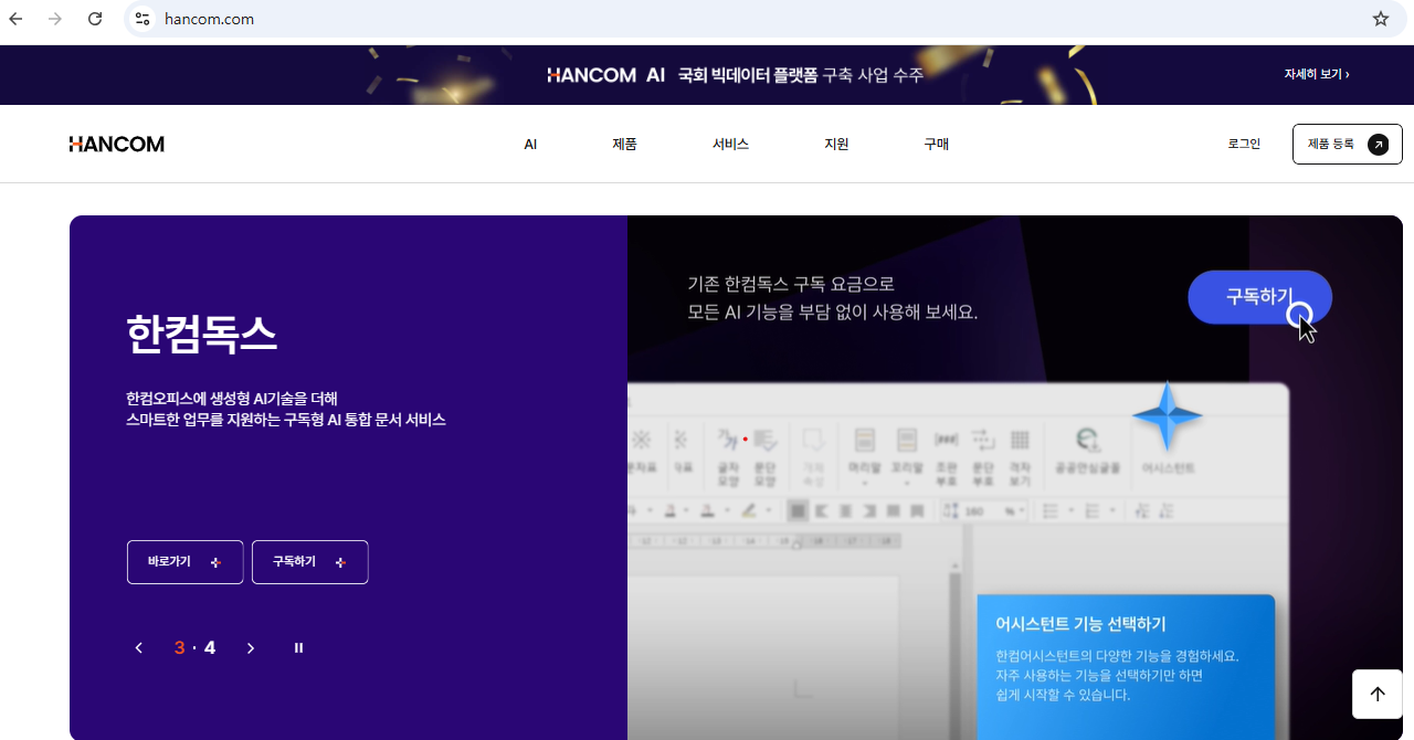 오피스를 넘어 AI까지, 글로벌 빅테크 기업으로의 도약. 한글과컴퓨터 웹사이트 방문을 환영합니다.